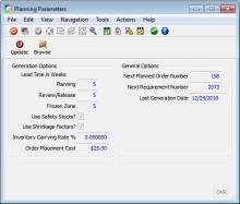 Generated planned orders may then be reviewed, optionally consolidated, and released for manufacture or purchase. Multiple reports and inquiries are also available to provide a comprehensive view of current and planned production and purchase activities.